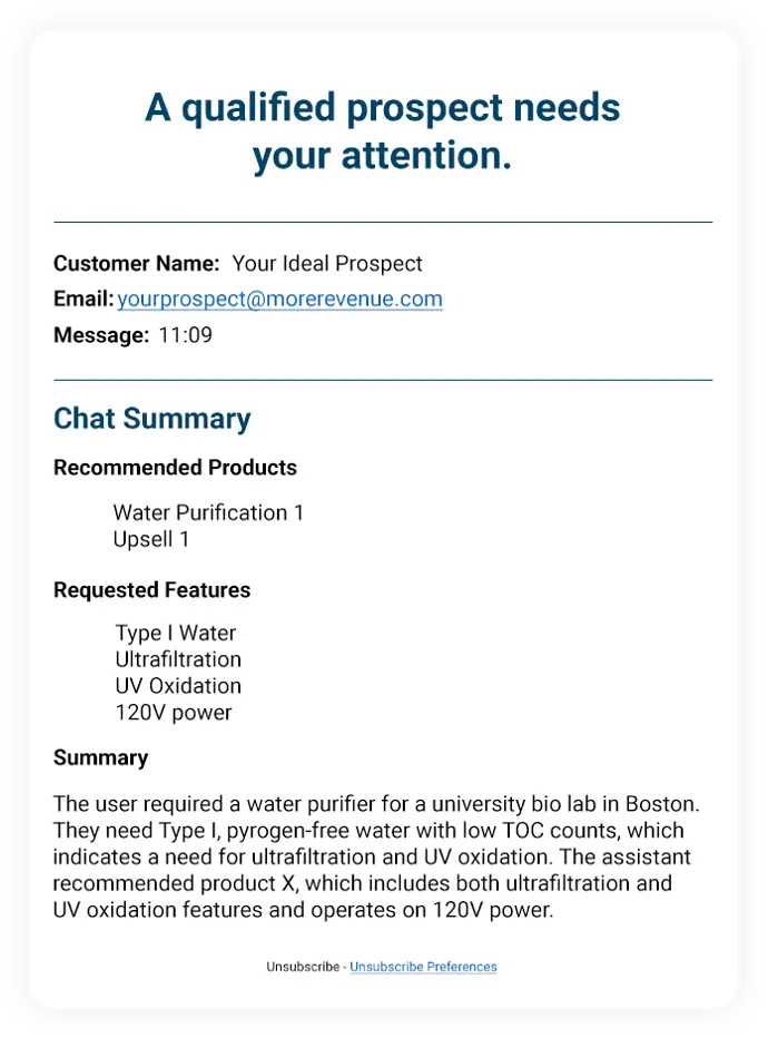 Let your custom, secure AI walk them through a short conversation that shows them what they need.