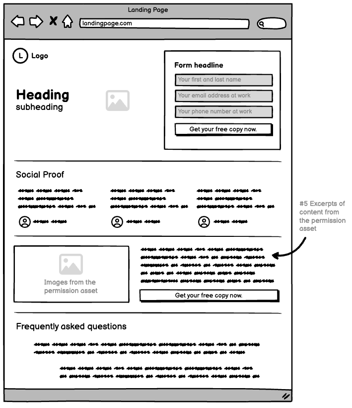 It’s a page on your website with a form (and lots more) where the user inputs their name and email to download the permission asset.