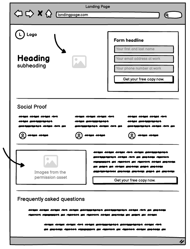 The point is - a landing page is visual, and you already have great visuals in your permission asset. So use them!