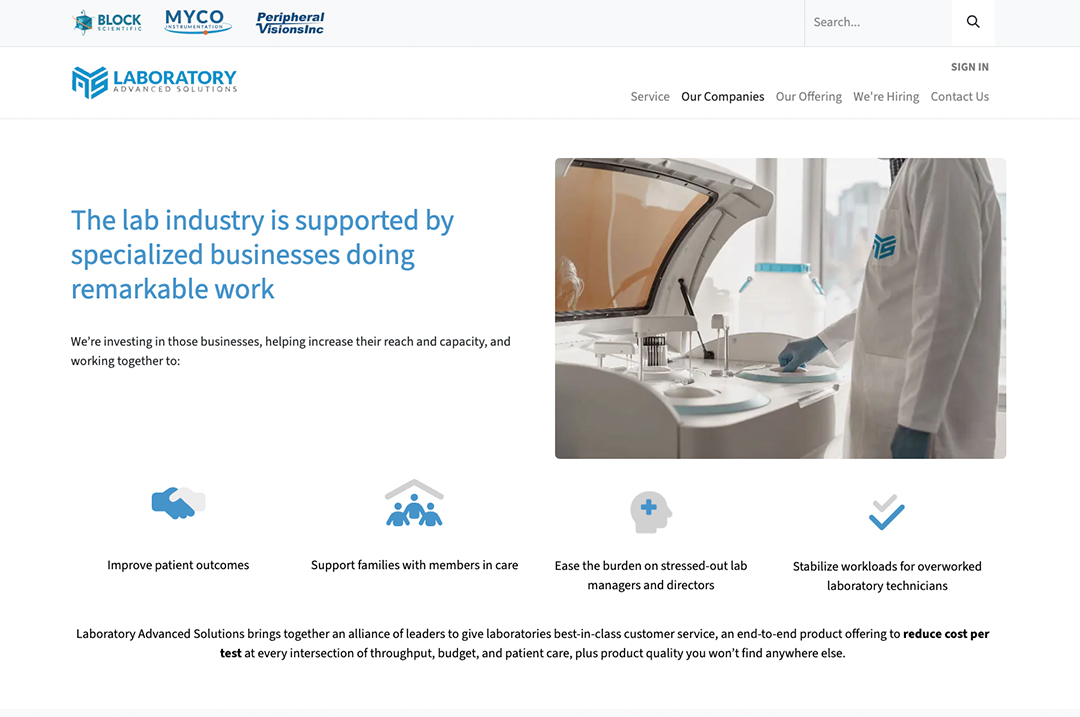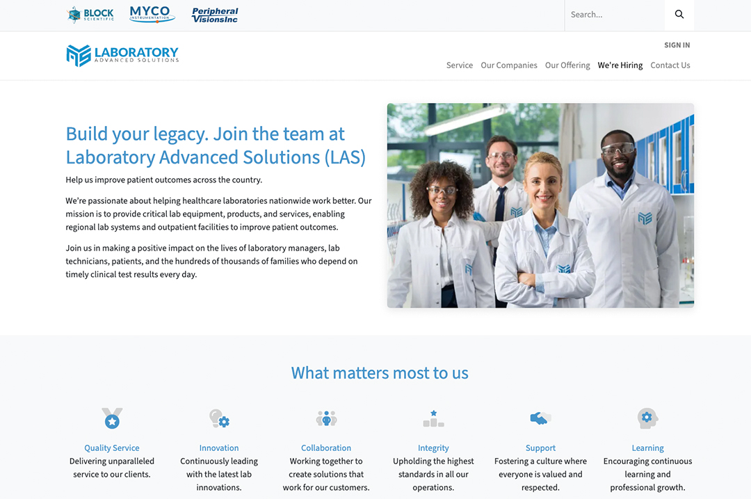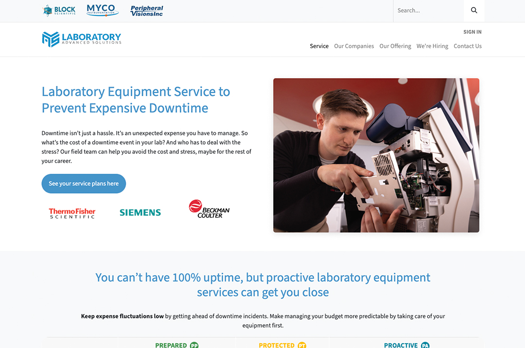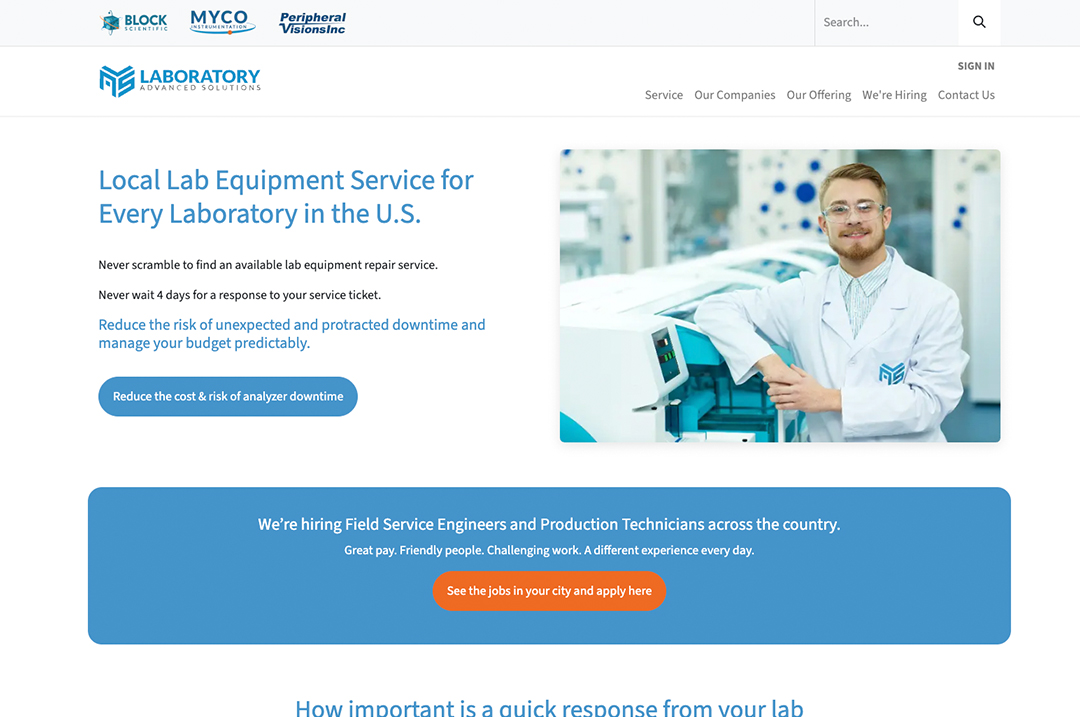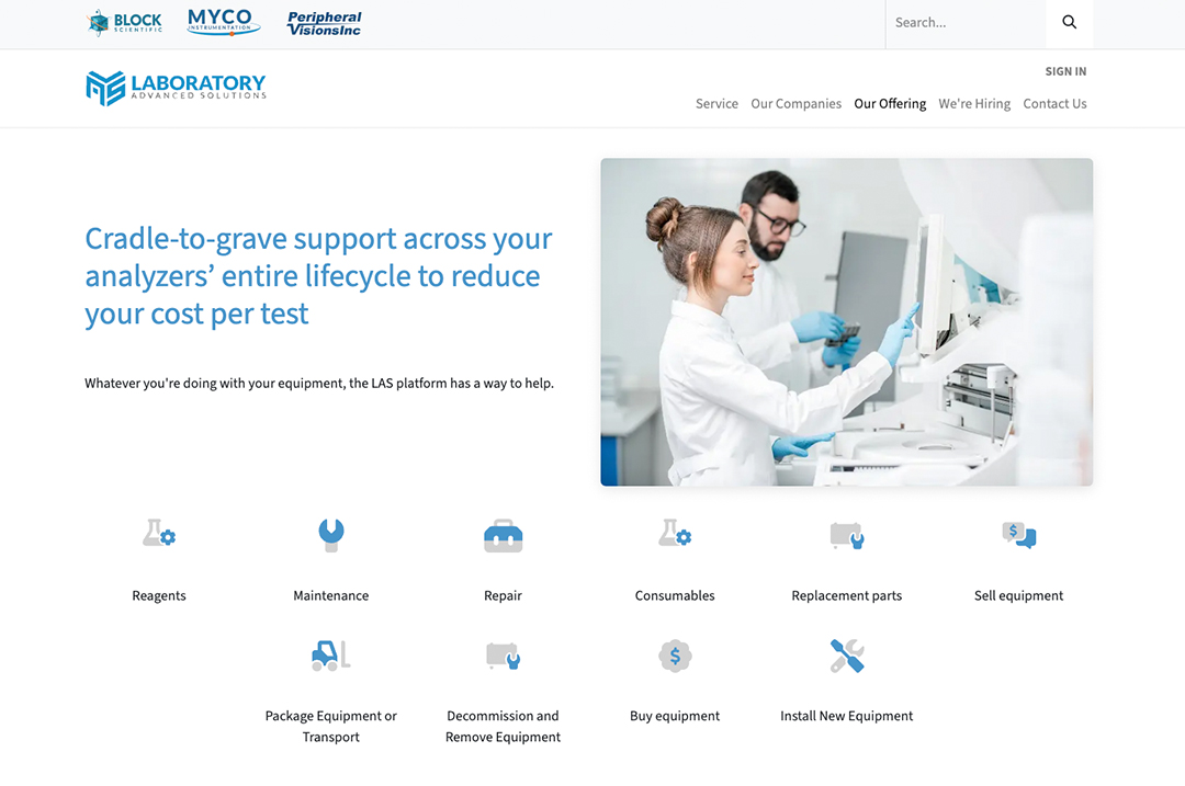 Website redesign on Odoo v17 for Laboratory Advanced Solutions, launched Q1 2024. View it live at www.laboratoryas.com.