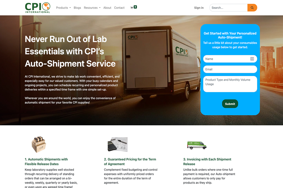 Website redesign on Odoo v17 for CPI International, launched Q1 2024. View it live at www.cpiinternational.com.