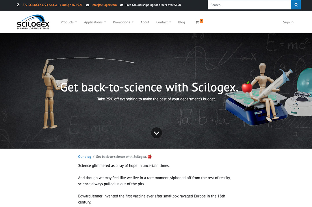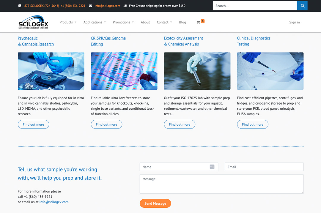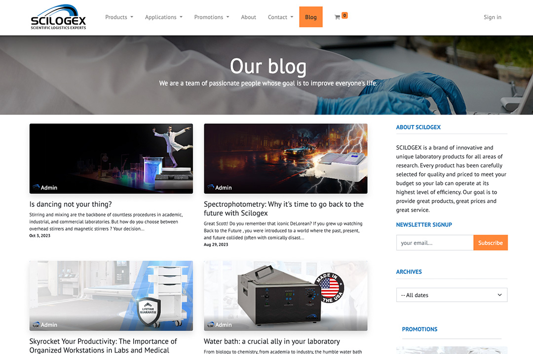 Website redesign on Odoo v17 for Scilogex, launched Q1 2024. View it live at www.scilogex.com.