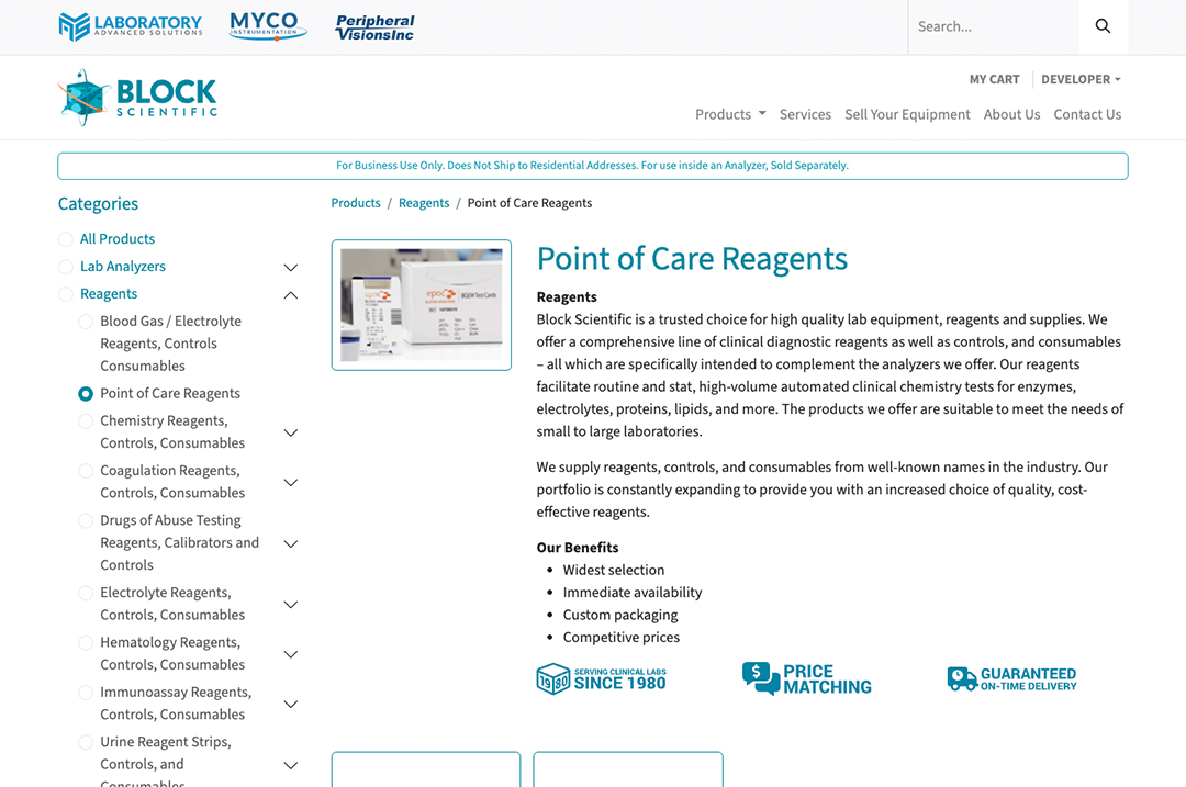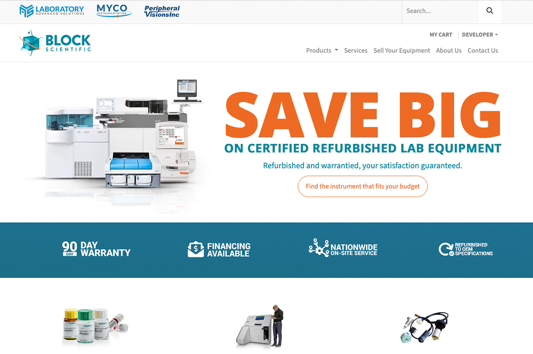 Website redesign on Odoo v17 for Block Scientific, launched Q1 2024. View it live at www.blockscientific.com.